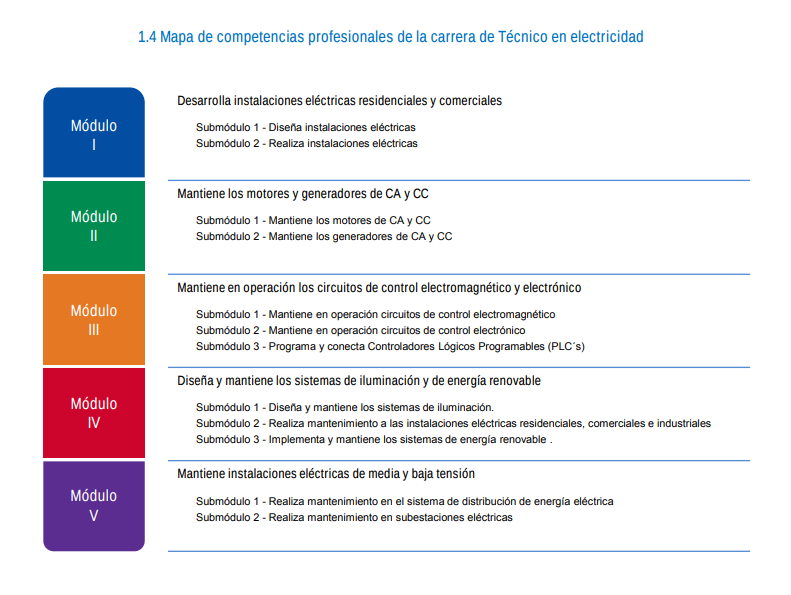 Durante el proceso de formación de los cinco módulos, el estudiante desarrollará o reforzará las siguientes competencias profesionales, correspondientes al Técnico en electricidad: